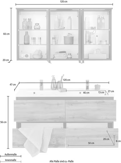 Waschtisch 120 cm – Spiegelschrank 120 cm
