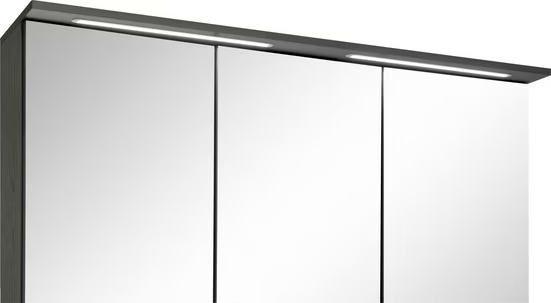 Im Spiegelschrank sorgen höhenverstellbare Einlegeböden für zusätzliche Ordnung. Zusätzlich ist er mit einer integrierten LED-Beleuchtung und einer praktischen Steckdose ausgestattet.