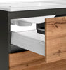 Die MDF-Fronten sind schlicht und elegant gestaltet. Das griffl ose Design in Holzoptik verleiht dem Set einen modernen und harmonischen Look, der sich vielen Einrichtungsstilen anpasst.